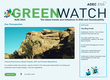 The latest trends and initiatives in ESG and Sustainability Our Perspective 2024 ADEC ESG Year in Review: Prioritizing Sustainability Reporting As we reflect on the last year, it’s clear that the global emphasis on environmental, social, and governance (ESG) practices has reached a pivotal point. Read more By Alicia Godlove Industry Updates New California law […]